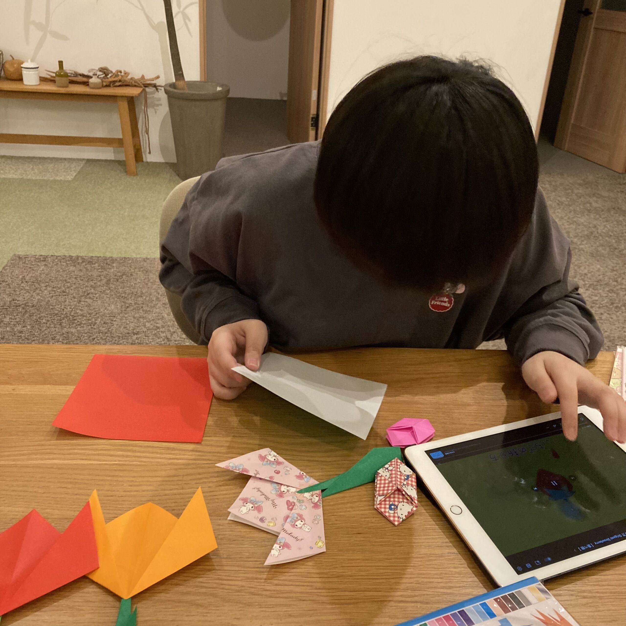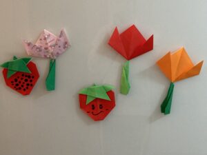 昨日、「春」を連想したもので折り紙を折っていきました。